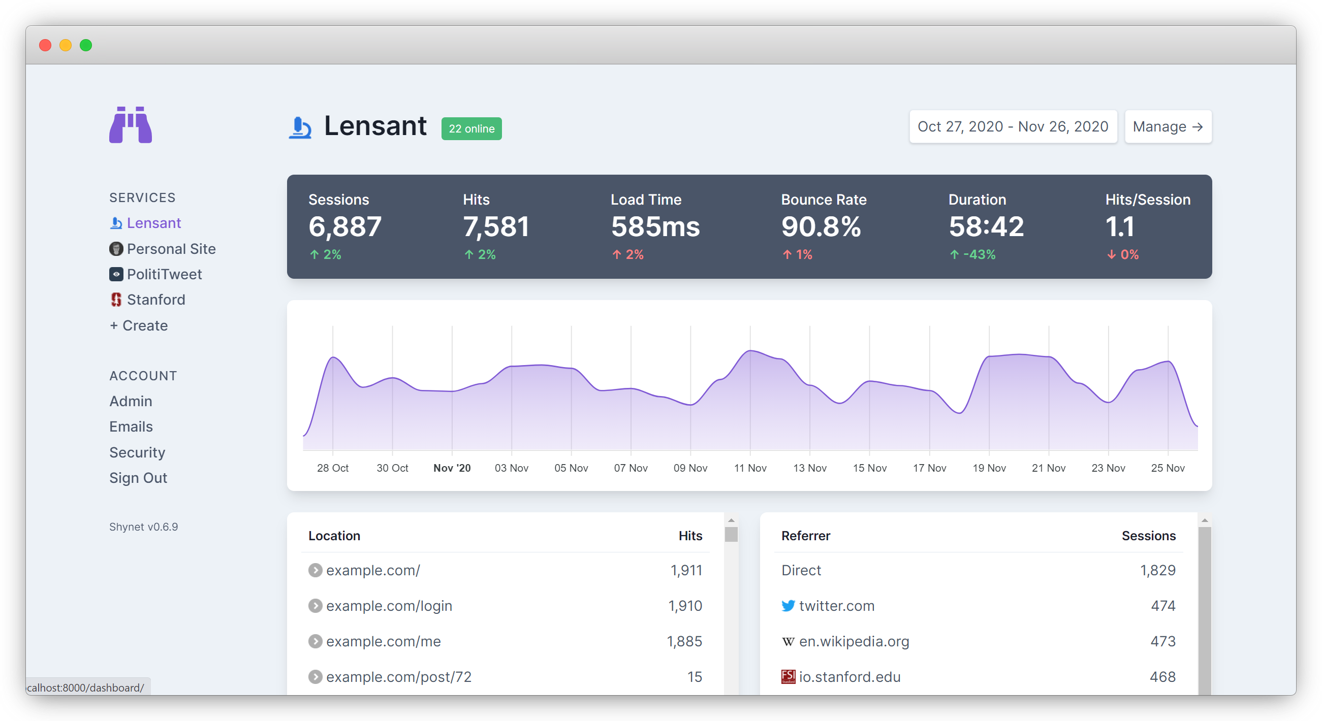 Shynet Screenshots