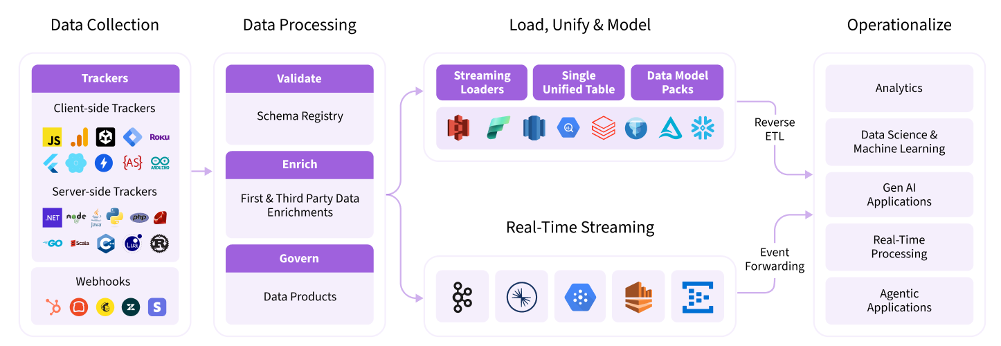 Snowplow Analytics is a highly customizable event data pipeline that requires engineering effort to set up. It enables rich behavioral data collection for downstream analysis in data warehouses.